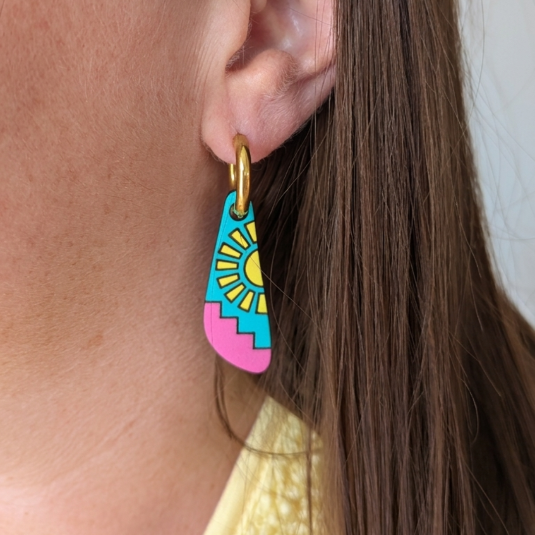 ☀️ Faites rayonner votre style ! Nos créoles « Soleil Pop » sont un concentré de bonne humeur et d’artisanat. Chaque pièce en bois est gravée avec précision au laser, puis mise en couleur à la main dans notre atelier pour un rendu vibrant et unique. Ultra-légères et 100% modulables, elles sont l’accessoire idéal pour illuminer vos tenues, qu’il fasse beau ou qu’il pleuve !